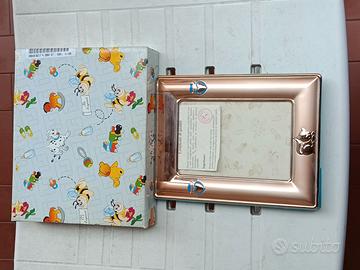 Cornice con luce foto 10×15. Laminato argento. Mai utilizzata, con scatola originale.