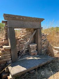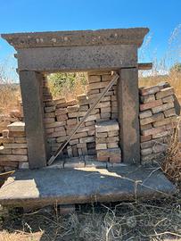 Cornice camino antico in peperino/basalto. Cimasa 120 x h 120 , base 134 nr. 5 elementi