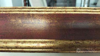 Cornice completa di passepartout per quadro di cm. 60x120 misure cornice fuori tutto 83,7x143,5 larghezza cm. 12,5 (cornice cm.7 + 5,5 passepartout) colori cornice rosso bordeaux rifinita oro , passepartout bianco, pagata Euro 200.