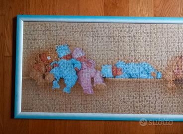 Cornice legno azzurro e puzzle. Totale misure 98 x 37