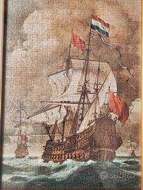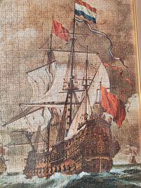 Cornice in legno e vetro doppio rilievo con all'interno puzzle. dimensioni 85 x 63 profondità cornice 5,5 cm