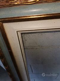 Cornice in legno (no brico) con vetro. Colore azzuro e dorato con effetto anticato Misure 110 x80. Posso consegnare a Udine e Padova
