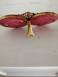 Cornice d'epoca doppia, dorata con bordo in velluto amaranto, in buone condizioni