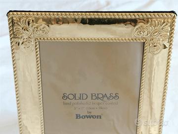 cornice d'epoca anni 80, marca brass by brown, ospita foto 13x18. color ottone, tenuta molto bene, ottima per ospitare foto cerimoniali.