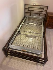 Elegante cornice per letto singolo in bambù con rete a molle ondaflex e materasso ortopedico.