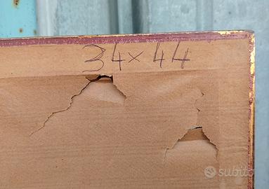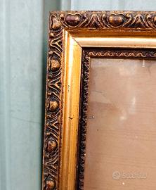 Cornice dorata per quadri datata, 34x44. Usata poco. Molto bella esteticamente. Con vetro. Vedete bene la misura. Se l'oggetto è di vostro interesse lasciate il vostro recapito telefonico. No perditempo. No spedizioni.