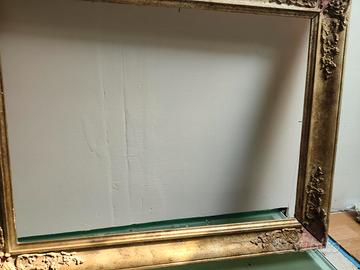 cornice metà/fine 800 in legno e stucco, patina originale, assenza di tarli, stucco da restaurare