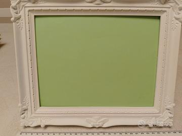 Cornice per fotografia con supporto posteriore per appoggiarla indifferentemente in verticale o in orizzontale. Dimensioni esterne: circa 22 x 28 cm, all'interno è contenuta bene una fotografia del formato 15 x 20 cm
