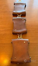 Cornice da parete vintage in stile Mid-Century realizzata in Italia negli anni '70, caratterizzata da tre sezioni in pelle curva unite da in metallo dorato. Perfetta per esporre foto e memorabilia.