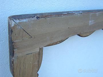 Bella cornice in legno lavorato. Quache traccia di tarlo non recente in un angolo. Misure 140 x 101 cm, spessore 2,5 cm Ogni elemento della cornice ha una larghezza massima di 8,5 cm e minima di 5 cm.