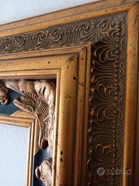 Vendo a prezzo simbolico grande e imponente cornice datata e ben stilizzata,adatta per un grande dipinto oppure come specchiera.H 175cm x145cm, capacità interna 134x104.Ritiro a carico del destinatario.No spedizione.