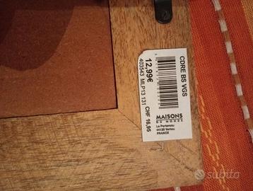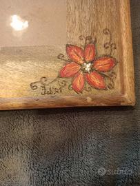 Cornice in legno pregiato inciso a fuoco con pirografo e colorato a mano,26x25,nuovo.