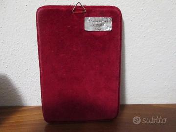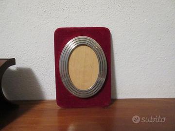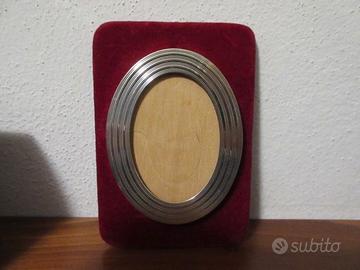 Base in velluto bordeau , cornice ovale in argento 800.