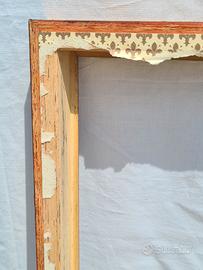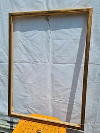 Cornice in legno, colore dorato, senza vetro. Dimensioni interne 50 x 70 cm. Larghezza 2,5 cm. Spessore 3 cm. Solo consegna diretta zona Novara.