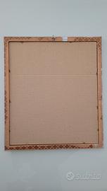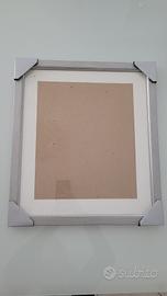 Cornice in legno dipinta di color argento. La protezione trasparente è in vetro, non è plastica. Misure 38,5 x 44 cm