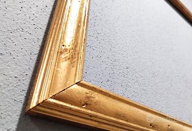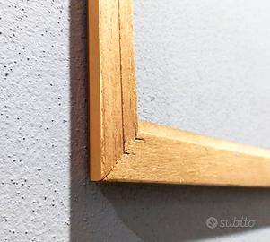 Elegante cornice in legno dorato dallo stile classico e senza tempo, ideale per quadri, stampe, fotografie o specchi decorativi. La finitura dorata dona luminosità e valorizza qualsiasi ambiente, perfetta per arredamenti classici, vintage o moderni. Struttura solida in legno con profilo pulito ed elegante, adatta sia per esposizione a parete che per progetti decorativi o restauro. Caratteristiche: Materiale: legno dorato Dimensioni esterne: 54,5 × 40 × 1,6 cm Alloggiamento interno: 50 × 35,3 cm Stile: classico / vintage Condizioni: buone condizioni generali con normali segni del tempo Spedizione sicura: l’articolo verrà imballato con compensatori a deformazione progressiva e protezioni rinforzate, con stratificazione anti-urto studiata per assorbire urti e vibrazioni durante il trasporto. cornicedorata,cornicelegno,cornicevintage,corniceclassica,cornicequadro,decorazionecasa,arredamentovintage,designclassico,oggettodarte,ornamentoparete,cornicerettangolare,decorazioneinterni