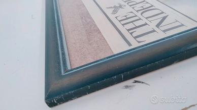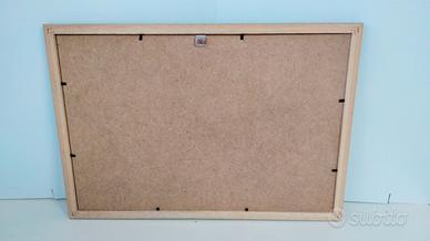 Cornice Legno Blu Petrolio Decapé - Stile Vintage/Shabby 30x45 Vendo bella cornice in legno caratterizzata da una particolare finitura blu petrolio decapé. Il design materico e il colore profondo la rendono un pezzo d'arredo ideale per dare risalto a stampe vintage, locandine o fotografie d’autore. Dimensioni: Misura utile (interna): 30 x 45 cm Ingombro totale: 33 x 48,5 cm L'oggetto è usato. Come visibile dalle foto di dettaglio, presenta alcuni segni del tempo e piccole mancanze di colore sugli spigoli e lungo i bordi. Questi dettagli accentuano lo stile "vissuto" e l'effetto decapé della cornice. Strutturalmente è solida e integra. Materiale: Legno Colore: Blu Petrolio con venature a vista Dotata di vetro protettivo e pannello posteriore
