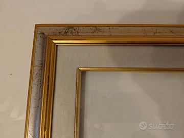 Cornice per quadro in legno con vetro. Dimensioni esterne 84 x 64 cm. Usata ma integra, vetro incluso. Prodotta artigianalmente da corniciaio, non è un articolo industriale costruito in serie.