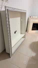 Vendo splendida cornice decorativa da parete per televisore, finitura color argento con lavorazione elegante e raffinata.