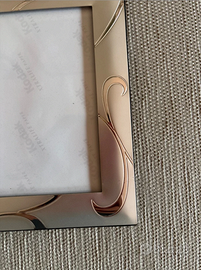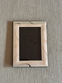 Porta foto colore argento. Parte dietro in velluto. In perfetto stato, dettagli nelle foto. Misure: 20 x 15 cm Ideale per mettere le vostre foto ricordo. Inserito foglio bianco per fare meglio le foto, che ovviamente verrà rimosso