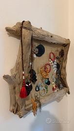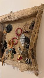 Cornice fatta a mano con legni del mare per appendere orecchini e gioielli vari