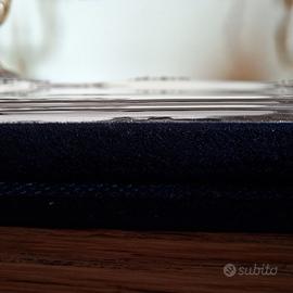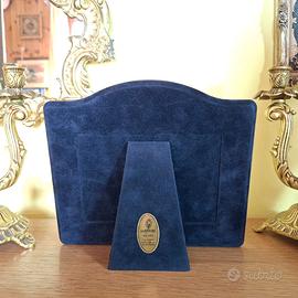 Bellissima ed elegante Cornice Portafoto di DEL CONTE dell'anno 2013 in Argento 925 massiccio. Stile Classico. Formato: orizzontale Misure interne foto: 10x15 cm Misure esterne: 20x23 cm Materiale: Argento 925 massiccio Materiale retro: Velluto Marca: DEL CONTE Luogo di produzione: Firenze Nuova, mai utilizzata, ancora nella sua scatola originale Prezzo di gioielleria euro 320,00 Spedizione con assicurazione. Del Conte è uno storico marchio fiorentino produttore di cornici d'argento, gioielli e oggetti d'arredo di altissima qualità, nato nel 1940, nel cuore di Firenze, come bottega artigiana. Fin dall'inizio all'azienda si è sempre basata sull'offerta di un prodotto innovativo e di alta qualità. E' stata tra le prime aziende a costruire delle cornici di argento in un unico pezzo, e non in quattro pezzi saldati insieme. Nel 2008 la Del Conte entra a far parte del gruppo Testi, con il brand Rebecca. Negli anni il brand cresce e con esso anche l'offerta diviene più ampia e diversificata. La maison fiorentina introduce nuovi prodotti, come le lampade e i bauli in pelle. Il rigore stilistico viene apprezzato anche da grandi maison come Dior, Cavalli, Versace, Gucci, Burberry e dai più prestigiosi department store internazionali o store specializzati che affidano le loro linee a Del Conte. Anche designer di fama mondiale si avvicinano a Del Conte creando sodalizi artistici volti a esplorare nuove forme espressive nell’oggetto di design. Nascono così le linee di complementi di arredo disegnate da Ettore Sottsass, Takahide Sano, Makio Hasuike, Barro de Gast, Liora Reich. Per qualsiasi informazione non esitate a chiedere.