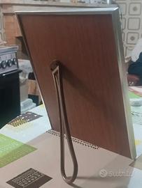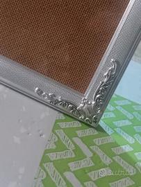 Cornice portafoto anni '60, cm 21x27 in metallo argentato con angoli decorati, supporto in legno come da foto. VINTAGE. Ottime condizioni.