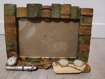 Vendo cornice portafoto decorata con libri occhiali penna e orologio, stile Harry Potter. Misura internamente 13,5x8,5 cm ed esternamente 17x14 cm. In ottime condizioni. spedizione a carico dell' acquirente o ritiro in zona Quarto D'Altino Mestre