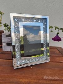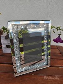 Vendo la seguente Cornice Portafoto in vetro specchiato con decoro di perle e glitter.