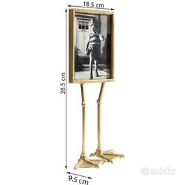 Cornice portafoto con piedi a anatra, oro anticato. 13x18 cm altezza totale 28,5 cm
