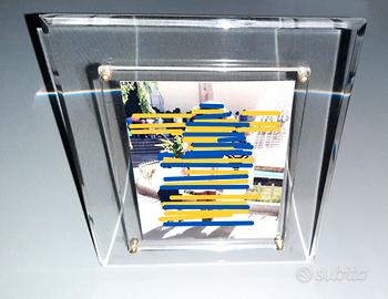 Portaritratti trasparente in plexiglass con finiture dorate (braccio di appoggio e viti), in perfette condizioni, come da foto. Misure in cm: h. 27; largh. 22; prof. (aperto) 18,5; massimo formato foto: 13x18 Spedizione rapida e tracciabile tramite Subito, a partire da € 3,85 in un punto di ritiro InPost. Oppure ritiro in loco a TORINO Porta Susa e, occasionalmente, anche ad ASTI o lungo tutto il percorso Torino-Asti della S.S. 10.