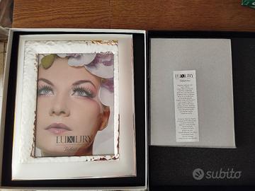 Vendo cornice porta foto/specchio in argento laminato della Valenti &co. Oggetto mai usato né appeso a parete, sempre nella sua confezione, lo specchio è a corredo.