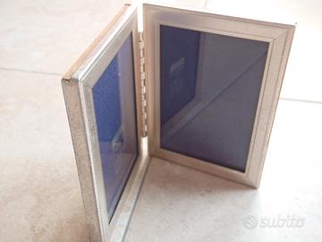 Vendo cornice portafoto euro 12 Cornice a libro possibilità di mettere due foto, schienale in legno dim. 10x8 cm chiusa marca Bussolari, titolata argento 1000 In ottimo stato, Per altre info o foto potete contattarmi