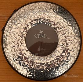 Vendo bellissima cornice di pregio STAR, prodotta da De Santis Argenti, in condizioni perfette. La parte frontale è in argento 925‰ (Sterling Silver), mentre il retro è realizzato in legno scuro. Scatola originale in perfette condizioni. Il certificato ne attesta l’autenticità.