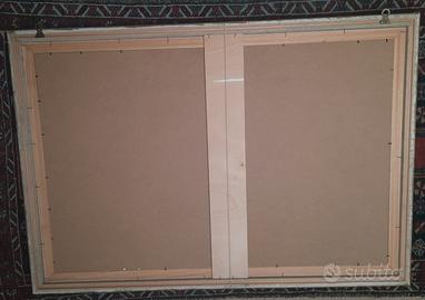 La cornice è patinata, con tonalità dorate, argentate e nere che le conferiscono un aspetto invecchiato. MISURE cm148 X cm101 È realizzata in legno. Il design è simile a quello che si potrebbe trovare su una cornice in stile Luigi XIV. Completa di pasepartou con profilo in oro e vetro Ideale anche per uno specchio