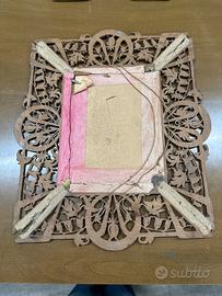 Vendo elegante cornice traforata in legno stile Liberty (Art Nouveau), caratterizzata da raffinati motivi floreali e decorazioni tipiche dei primi del ‘900.