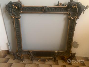 cornice specchiera in stile Luigi XV, realizzata in legno intagliato con finiture argentate da restaurare