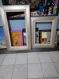 vendo 2 cornici in legno trattate con foglia d'argento. in alcuni punti la foglia d'argento mancante ma si vede e non. comunque se siete artigiani la potete sempre fare come volete. possiedono entrambe il pass partou e sono rispettivamente per tele 50x70cm e 50x100cm