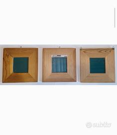 Vendo il set di tre cornici MALMA di IKEA, in legno. Usate: una cornice ha perso il gancio originale e ne sono stati aggiunti due e un'altra cornice per colpa dell'umidità si è lentamente disassemblato l'angolo.