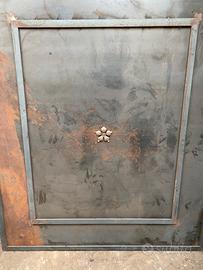 Vendiamo lamiere spessore 4 mm con cornice di piatto 30x0,8 dove potete usare come ringhiere , parapetti o per decoro cancelli .. Lavoro artigianale rifinito molto bene .. Le cornici non hanno saldature a vista perché sono stati fatti fori dietro la lamiera e riempiti a sua volta di saldatura spianata . Misure : 1180x1400 ( 5 Pannelli) 1020x1400 (6 Pannelli) Le misure sono in mm