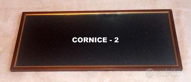 Cornici di legno con vetro, passepartout nero, foglio di compensato o cartone sul fondo, cartoncino di sigillatura posteriore e attaccaglie per appendere. Legno tipo noce da cm 1,5 x 1,5 circa con filo in oro. Cornice-1: cm 29 x 72 x 1,5: 15 Euro / Cornice-2: cm 24 x 54 x 1,5: 10 Euro / Cornice-3: cm 41 x 32 x 1,5: 10 Euro. Cornici in buono stato acquistabili anche singolarmente. Le 3 cornici in blocco: 30 Euro.