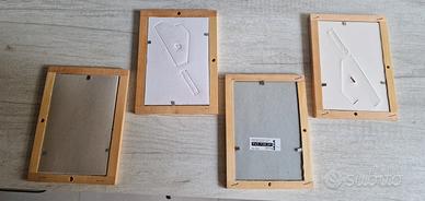 4 cornici IKEA in legno naturale misura 10 x 15 cm con perno di supporto come da foto. Nuove mai usate.