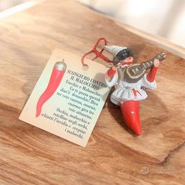Corno portafortuna pulcinella con violino realizzato da arte in movimento a Napoli. Materiale ceramica dipinta a mano peso 12 grammi lunghezza 6cm.
