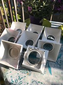 n 8 corpi illuminanti di forma quadrata di dimensioni esterne cm 10x10 incasso dimensioni cm 7x7 di colore bianco senza lampadine