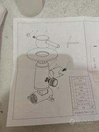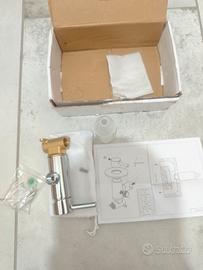 Vendo corpo miscelatore monocomando da incasso, adatto per bidet o doccia. Struttura in metallo con finitura cromata lucida e raccordo in ottone. Dettagli dell'articolo: Materiale: Corpo in lega metallica cromata con terminale di connessione in ottone. Meccanismo: Leva monocomando per la miscelazione dell'acqua. Accessori inclusi: * Corpo miscelatore. Bustina sigillata con viti, tasselli e guarnizione. Manuale d'istruzioni. Condizioni: Ottime condizioni estetiche, mai installato. ⚠️ NOTA IMPORTANTE (Pezzi mancanti): Il set NON è completo rispetto allo schema tecnico originale. Mancano i seguenti pezzi: Pezzo n. 4 (Wall cover): La placca circolare cromata che copre il foro a muro. Pezzo n. 6 (Holder): Il supporto laterale per il doccino.