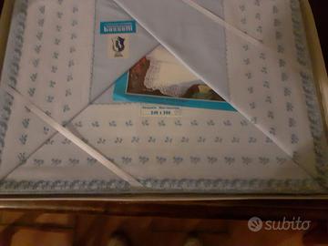 Corredo Bassetti mai usato. Il corredo é composto da: 1 Lenzuolo 2 Federe ricamate 1 Tovaglia 12 Tovaglioli 2 Asciugami grandi 2 Asciugami piccoli ricamati