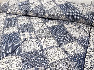 Lenzuola cotone 100% stampato patchwork rifinito a cornetto, misure cm 270x290,federe cuscini misure cm 50x80.