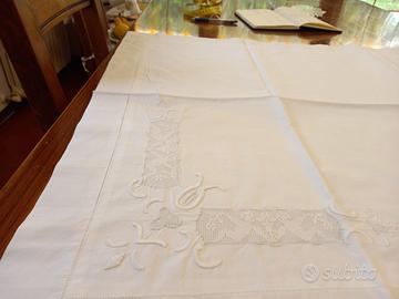 1)Lenzuolo, anni 40,in cotone, file',motivo angeli e ricamo a mano, misura 255x290,con 2 federe misura 70x90 : € 500,00 Trattabili