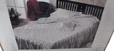Corredo in raso bianco trapuntato per letto matrimoniale. Mai usato