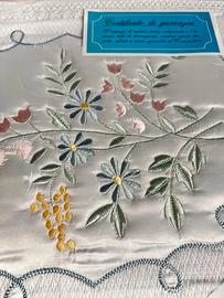 Raffinato Set lusso casa lenzuola e copriletto (100% puro cotone ) con ricamo Fiori a mano in punto pieno. COFANETTO CORREDO MATRIMONIALE Elegante e chic #preziosocompletoletto #cotone #ricamipreziosi #setlettomatrimoniale #lenzuolaecopriletto #corredo #lavorazioneartigianale #setlusso #nuovoconcartellino